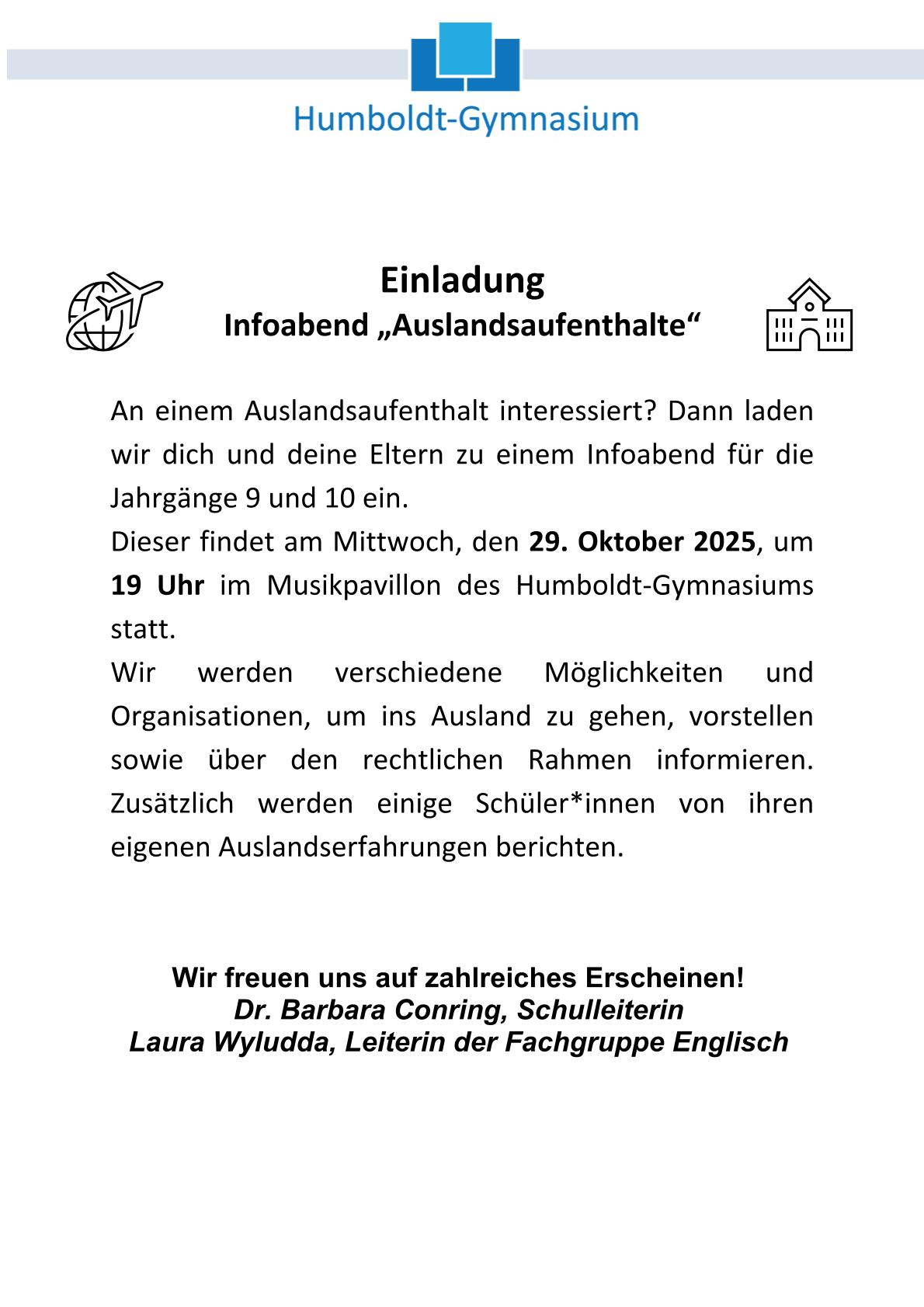 Einladung zum Infoabend "Auslandsaufenthalte"