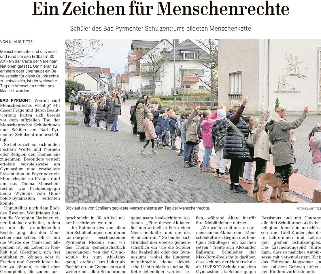 Anbei der Bericht aus den Pyrmonter Nachrichten vom 11.12.2025.