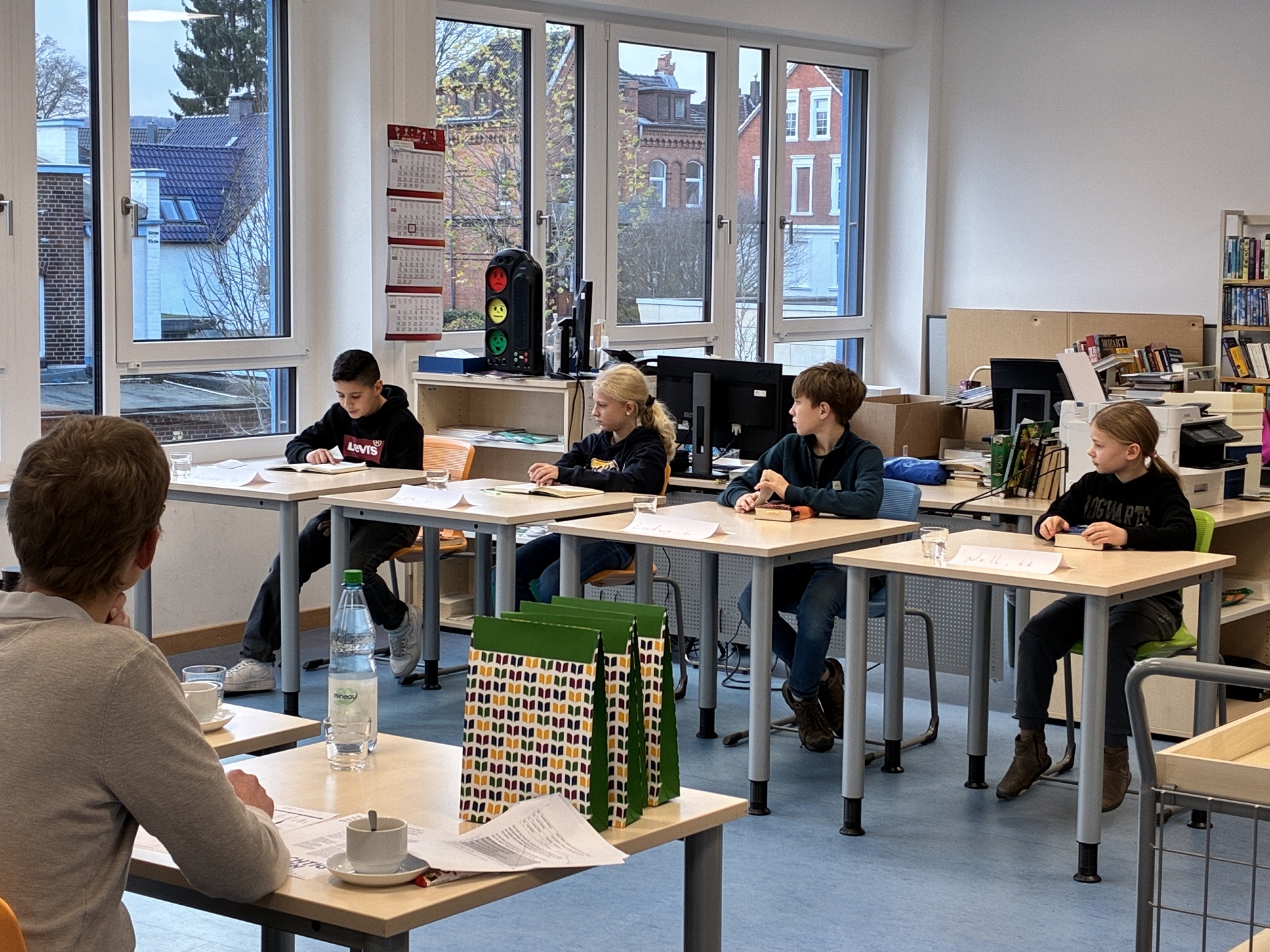 Am Mittwoch, dem 19. November 2025, trafen in der Schulbibliothek des Humboldt-Gymnasiums zwei Vorleserinnen und zwei Vorleser aufeinander. Sie haben sich in ihren jeweiligen 6. Klassen gegen viele andere Vorleserinnen und Vorleser durchgesetzt und bewiesen, dass man mit einer guten Geschichte nicht nur Spaß haben kann. Im Schulfinale zeigten sie uns, dass Bücher eben nicht nur aus Papier bestehen, sondern aus Abenteuern, Welten und Figuren, die unsere Vorstellungskraft anregen und zu Auszeiten förmlich einladen.