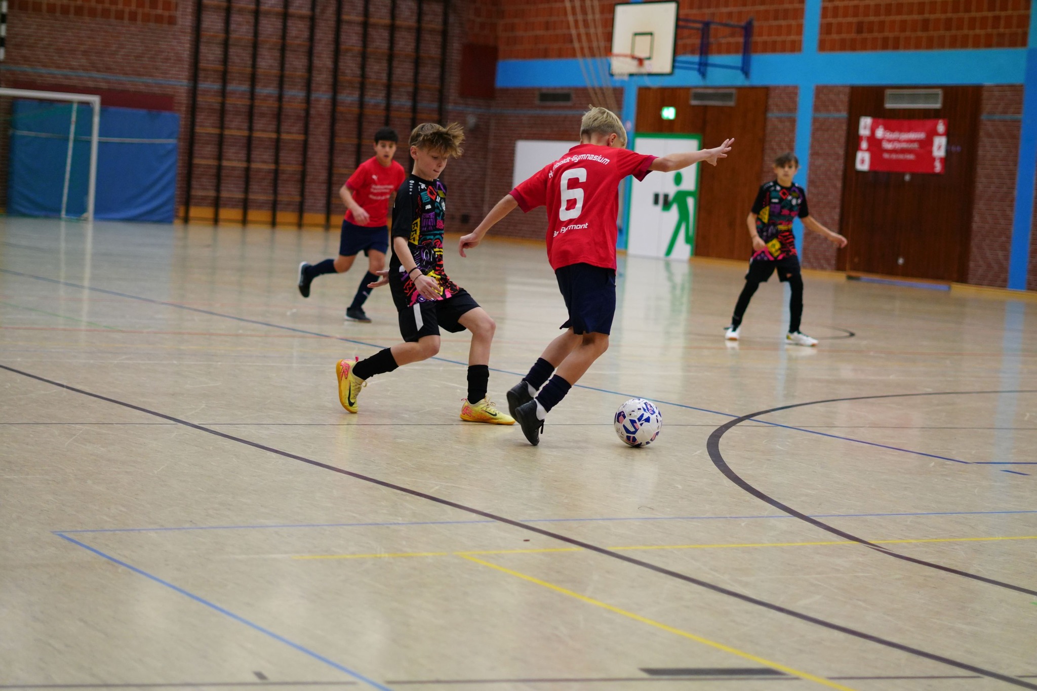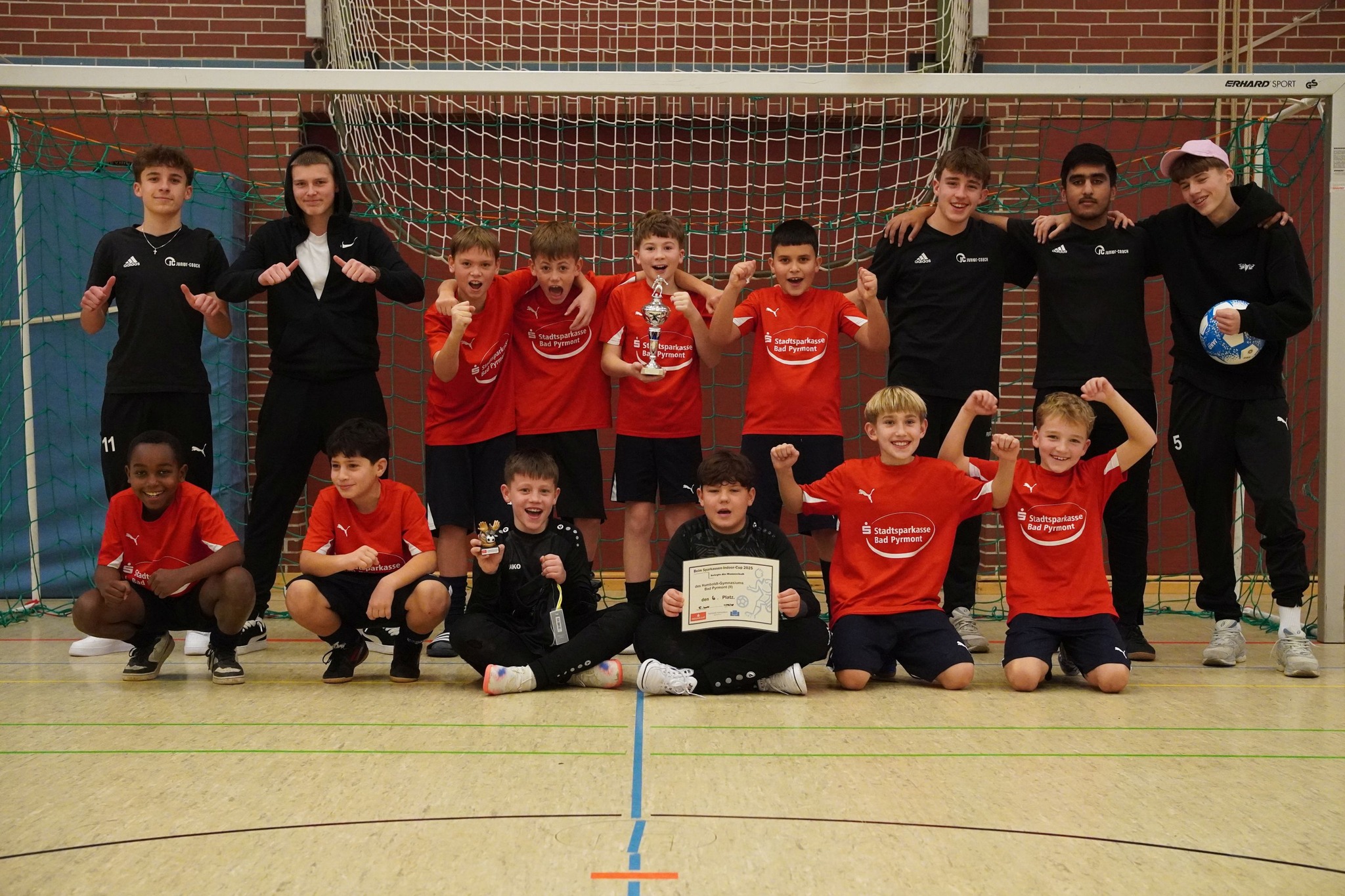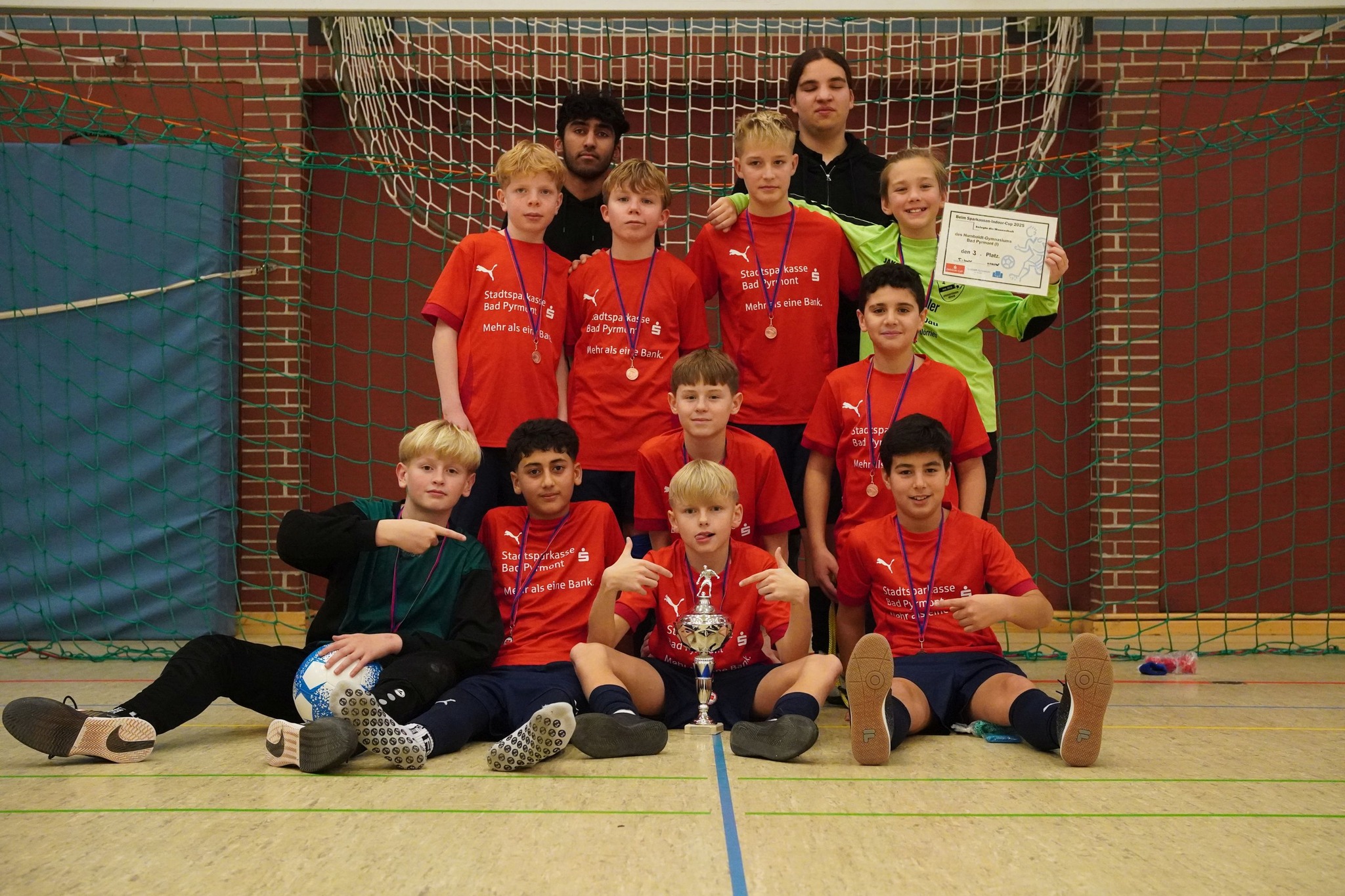 Die Stimmung bei den Zuschauern auf den Rängen und unter den Aktiven war wieder einmal hervorragend. Auch die 17. Auflage des "S-Indoor-Cups" war eine rundum gelungene Veranstaltung. Wir freuten uns über Grußworte von Jens Veneman vom Hauptsponsor, der Stadtsparkasse Bad Pyrmont, Schulleiterin Barbara Conring und Malte Fitzner (Schulfußball-Beauftragter des Kreises Hameln-Pyrmont). Dank gebührt vor allem eben dem Namensgebe, der den fantastischen Rahmen dieses Turniers Jahr für Jahr ermöglicht, dem Elternverein, dem 12. Jahrgang, der für Hallenaufsicht und Turnierregie sorgte, dem Cafeteria-Team des Abijahrgangs für das Catering, dem Schulsanitätsdienst, der sich kompetent um einige Blessuren kümmerte, Hausmeister Markus Schäfer, den tollen Schiedsrichtern Can Yilmaz und Nils Hasse, Moritz Lehzen und Valentin Woitkewitsch, die das Turnier fotografisch begleiteten, sowie den Junior-Coaches Junior Coaches Serkan Abubaker Saqib, Adrian Grincenko, Elias Tappe, Luca Schröder Nevio Widerstein, Rayan Saqib und Silvan Kollenberg, die die beiden Teams des Humboldt-Gymnasiums sehr engagiert und organisiert vorbereiteten und betreuten. Wir freuen uns auf ein Wiedersehen zum dann bereits 18. "S-Indoor-Cup" im Dezember 2026!
