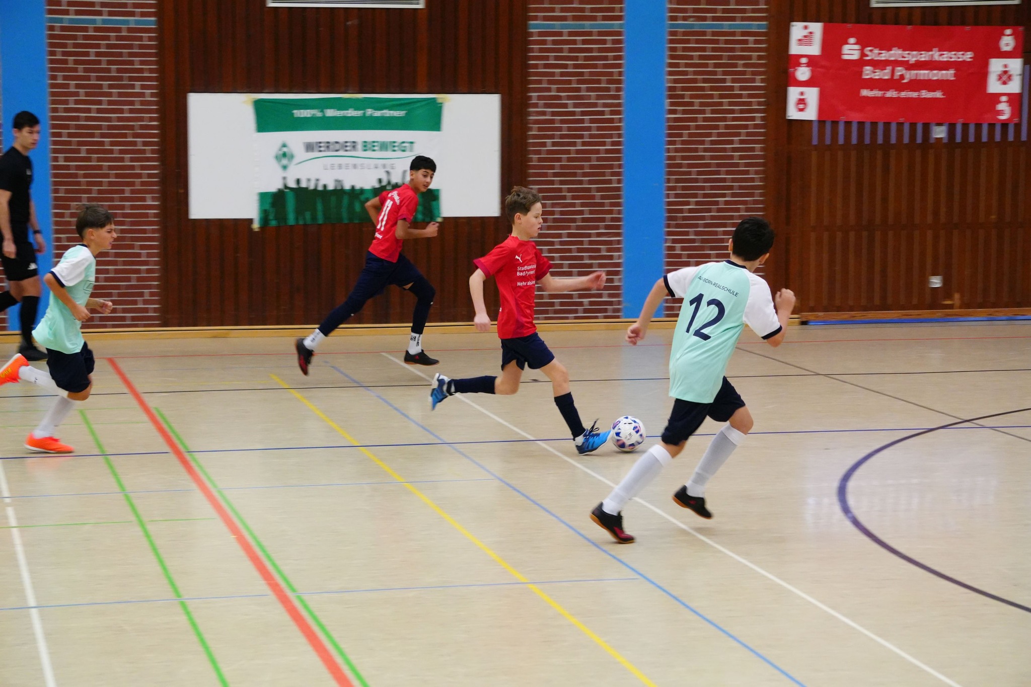 Am Donnerstag vergangener Woche kam es in der Sporthalle an der Südstraße in Bad Pyrmont zur mittlerweile 17. Auflage unseres großen U13-Turniers um den "S-Indoor-Cup". Wie üblich waren acht Mannschaften aus dem Kreis am Start: Neben den beiden Teams unserer Schule bestand das Teilnehmerfeld aus einem Hamelner "Kontingent" mit dem Vorjahressieger vom Albert-Einstein-Gymnasium, dem Schiller-Gymnasium, der IGS West sowie der Elisabeth-Belling-Gesamtschule. Hinzu kamen die KGS Salzhemmendorf und die schon bewährte Spielgemeinschaft aus Herderschule und Max-Born-Realschule Bad Pyrmont.