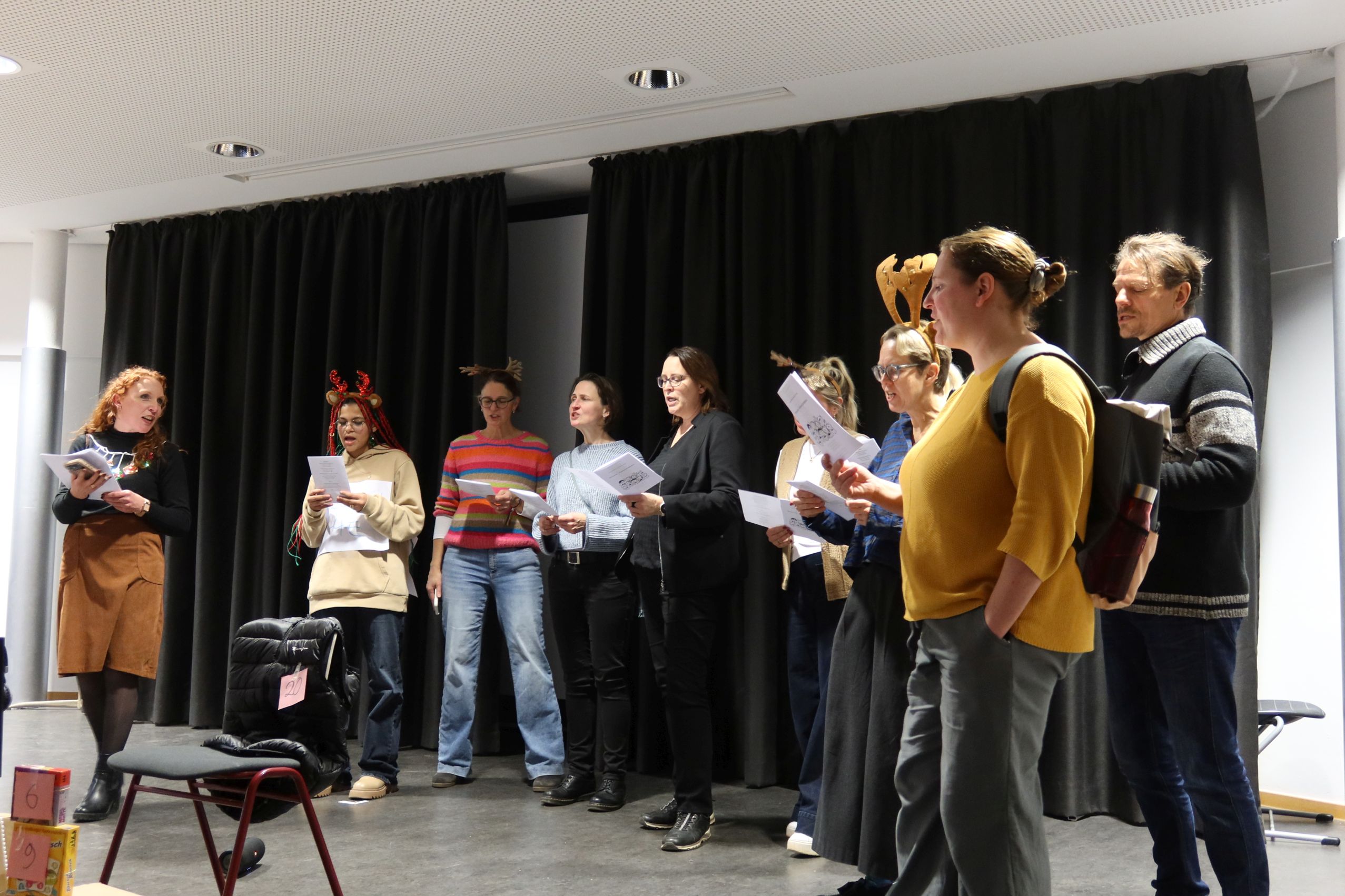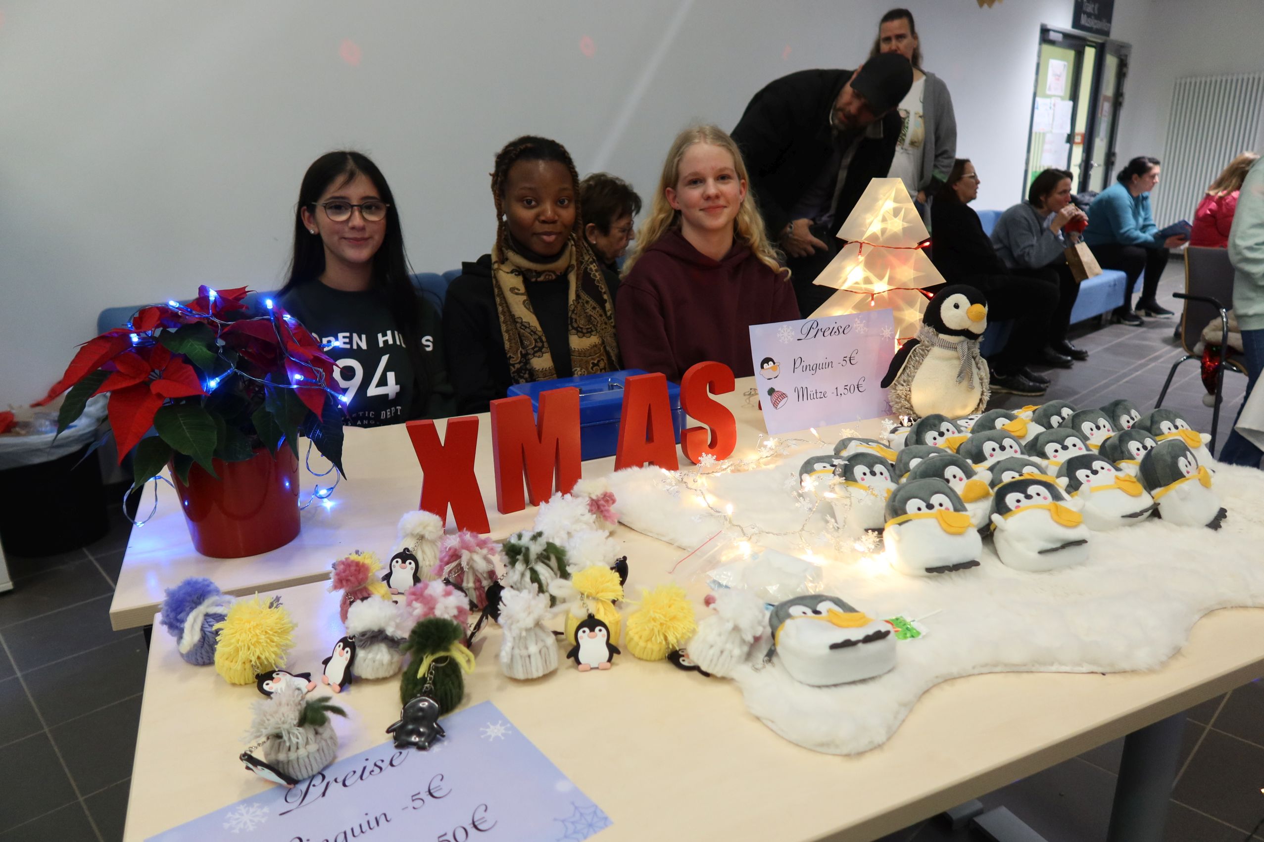 Für eine besonders festliche Atmosphäre sorgte auch das Rudelsingen, bei dem eine Gruppe aus Sängerinnen und Sängern durch die Schule zog und an unterschiedlichen Stellen Weihnachtslieder sang. Auch Weihnachtsmann und Schneemann tauchten immer wieder auf dem Markt auf.
