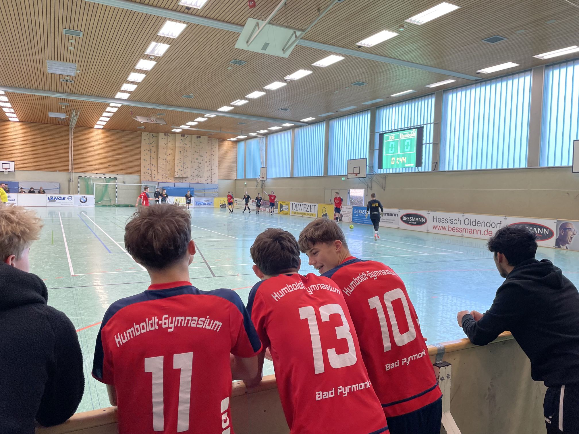 Ein herzliches Dankeschön geht an die beteiligten Junior-Coaches Elias Altenberend und Rayan Saqib sowie die Spieler, die unsere Schule sportlich fair und sympathisch vertreten haben. Dass dies in dieser Altersklasse - in einer sehr lauten Halle mit einer recht aggressiven Grundatmosphäre - nicht selbstverständlich ist, zeigte eine massive Rudelbildung mit Würgegriffen und sonstigen Tätlichkeiten im Spiel zweier anderer Schulen, die für die Beteiligten unverständlicherweise ohne Konsequenzen blieb. Bis auf diesen Aussetzer war der bereits 24. "Christmas Cup" jedoch wie immer ein sehr gut organisiertes Turnier in einem wirklich großen Rahmen, für das wir uns sehr herzlich beim Ausrichter bedanken.