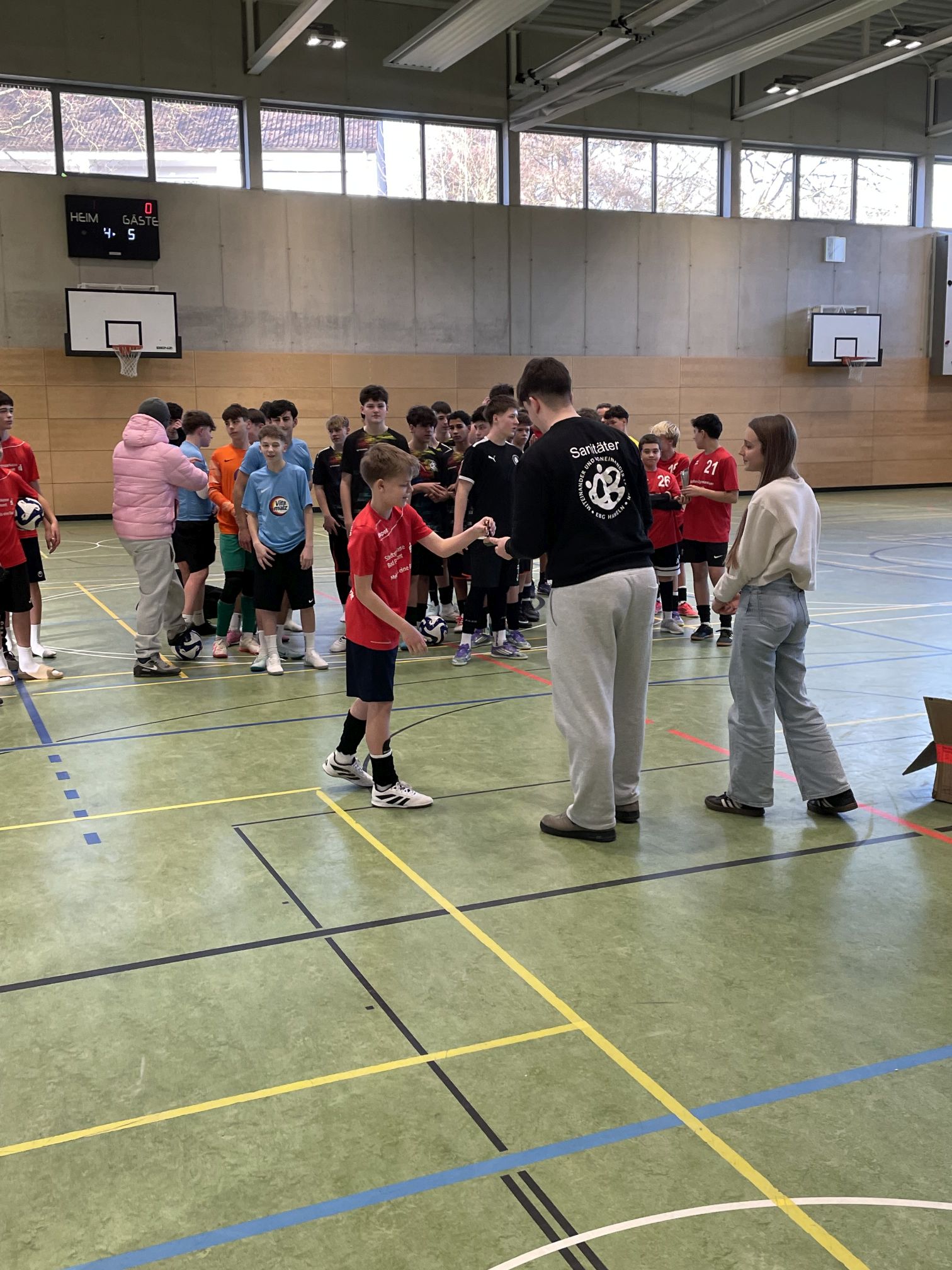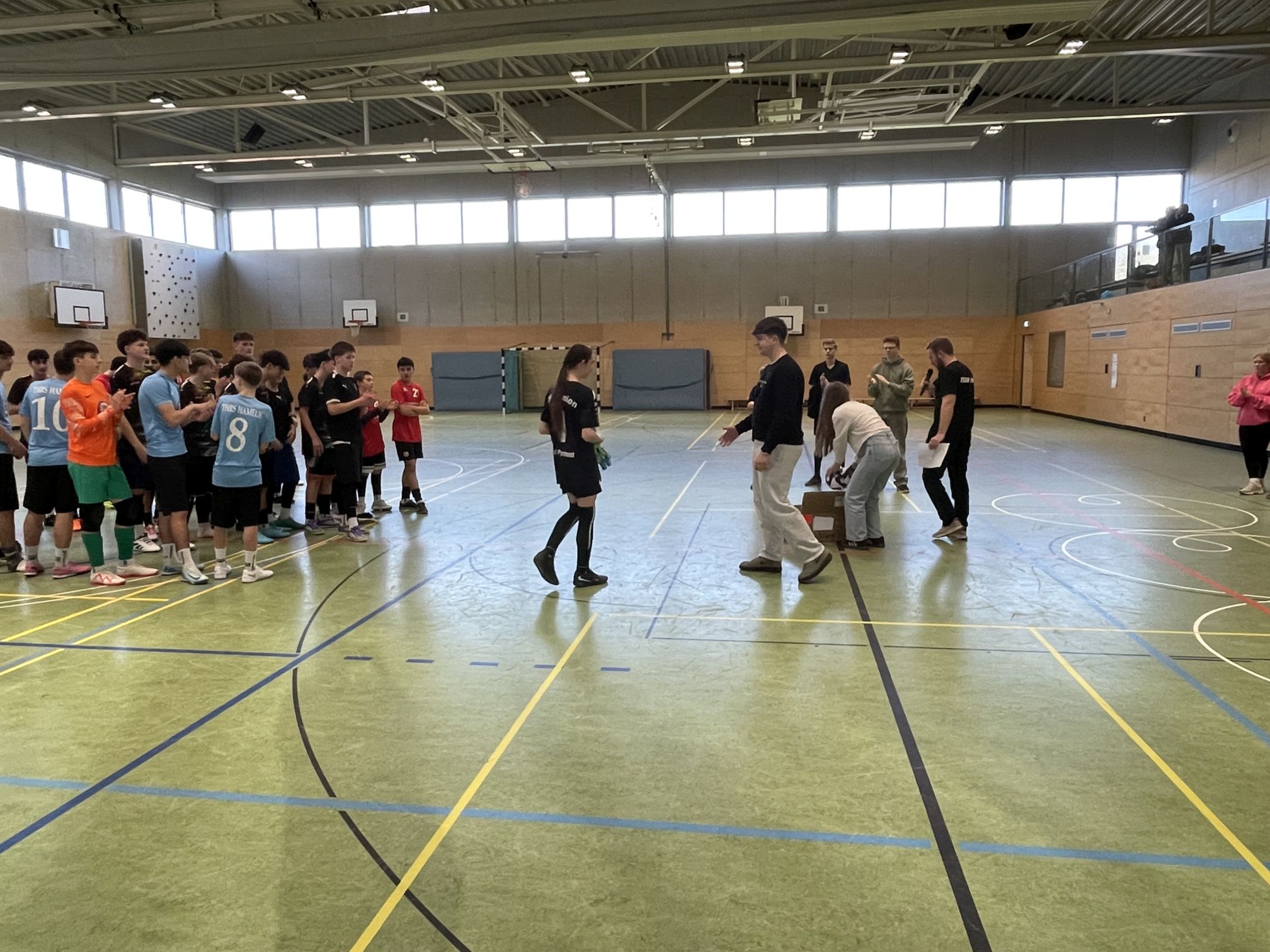 Zum Ende der kleinen, aber feinen"Schulfußball-Hallensaison" (für Jungenteams) errang unser U15-Team beim "Halbzeit-Cup" der Elisabeth-Belling-Gesamtschule Hameln einen sehr achtbaren dritten Rang. Diese Platzierung fügte sich sehr logisch in die bisherigen Auftritte ein, da zuvor (wie berichtet) ein 3. Platz bei unserem eigenen "S-Indoor-Cup", ein 5. Platz beim "Christmas-Cup" der KGS Salzhemmendorf sowie ein 1. Platz beim eigentlich hochkarätigsten Turnier um den "Norby-Cup" in Magdeburg zu Buche gestanden hatten. Somit ist also der 3. Rang über alle Hallenturniere hinweg unsere Durchschnittsplatzierung.