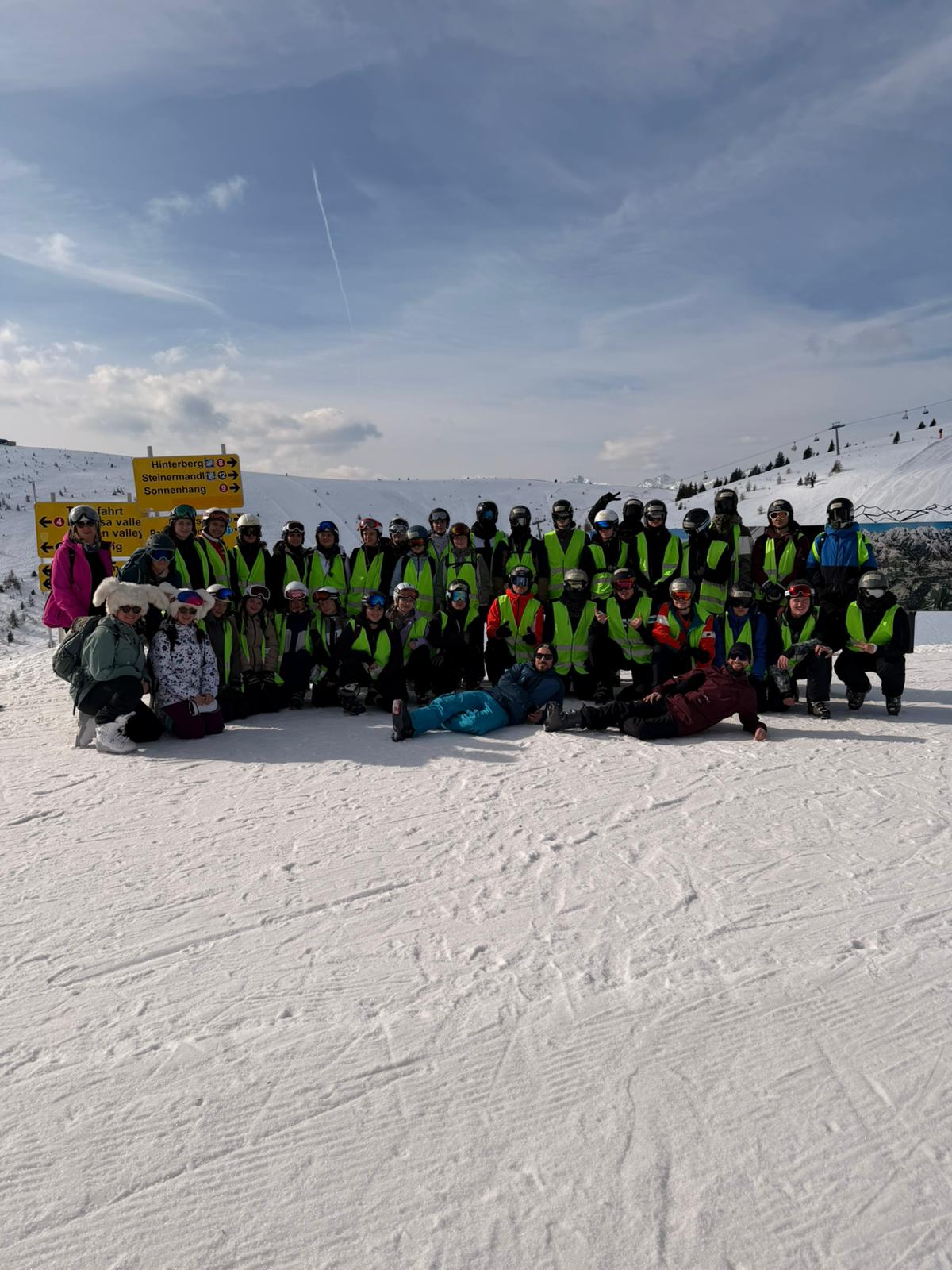 Nach dem Mittagessen gab es dann eine positive Nachricht, wir Anfänger durften zum ersten mal auf eine rote Piste und die Chance haben wir natürlich genützt, wir sind wieder hoch mit der Gondel, um dann die rote Piste runterzufahren. Als wir die rote Piste runtergefahren sind, mussten wir ja natürlich auch wieder hoch und in dem Fall war es dann durch den Sessellift, den ich dann zum ersten mal gefahren bin. Dabei habe ich dann einen Skistock verloren, was dann der ausschlaggebende Punkt war, wieso ich zur Pistensau gewählt wurde.