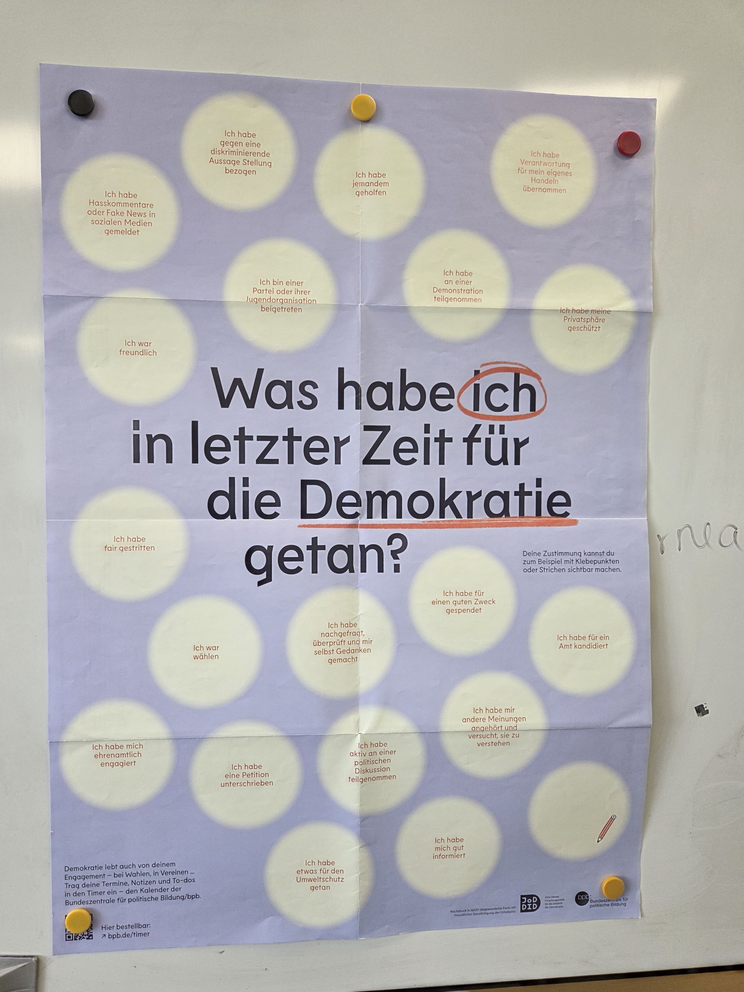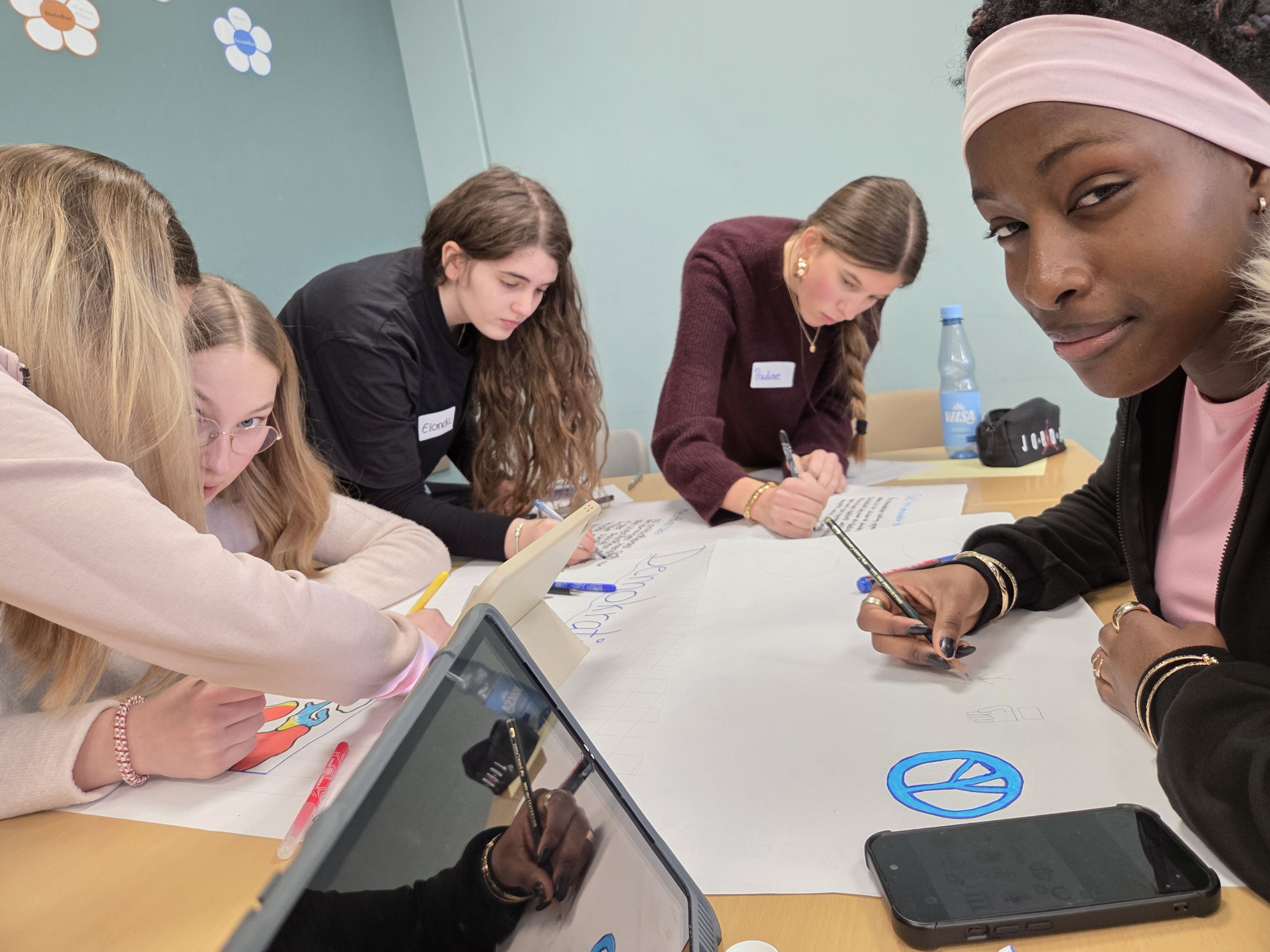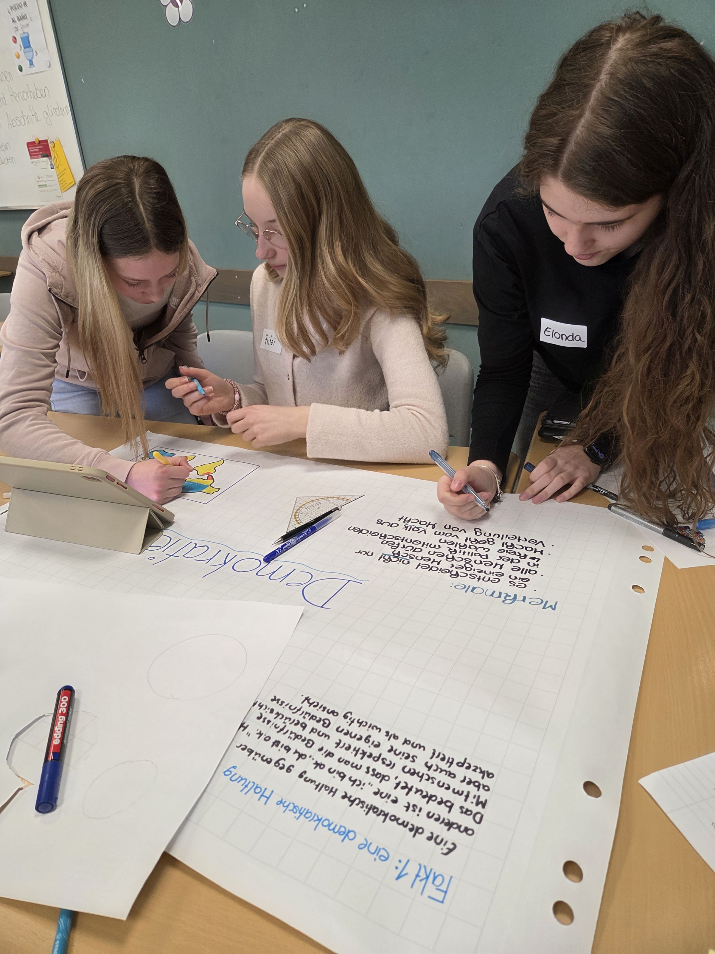 Die Schülerinnen Favour, Fritzi, Shiloh, Pauline und Elonda möchten ihr Wissen nun an die Schulgemeinschaft weitergeben. Ihr Ziel ist es, andere Lernende zu sensibilisieren und gemeinsam Ideen zu entwickeln, wie unsere Schule noch demokratischer gestaltet werden kann und wie demokratische Werte gestärkt werden können.