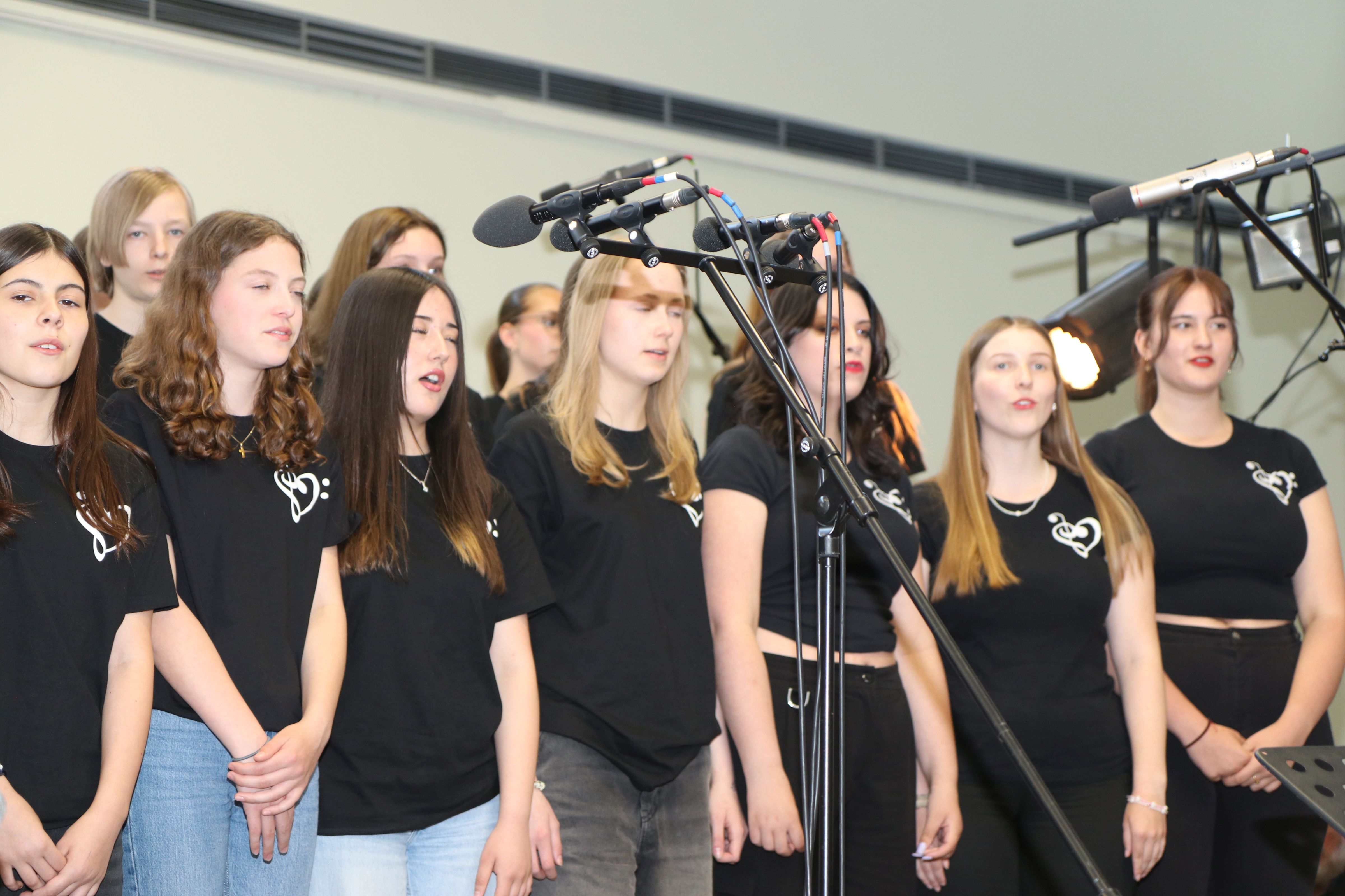 Am 06.06.2024 veranstaltete das Humboldt-Gymnasium sein traditionelles jährliches großes Schulkonzert. Als Veranstaltungsort diente dieses Mal der Lindenhof in Holzhausen, in dem kaum ein Sitzplatz frei blieb. Im Gegensatz zu den beiden letzten Jahren fand das Konzert wegen der höheren Platzkapazitäten im Gegensatz zur Pausenhalle der Schule nur in einfacher Ausgabe statt. Die Zuhörer erlebten ein kurzweiliges Konzert mit Beiträgen der Band I und II, des Chors I und II, der Klasse 5c, des WPK Kultur Jahrgang 10, des Lehrerchors sowie des neugegründeten Elternchors. Zwischendurch konnte das Publikum sich immer wieder über humorvolle Einlagen freuen, als sich beispielsweise der Lehrerchor als James Bond verkleidet auf die Bühne schlich, oder als am Ende Figuren aus dem Disney-Film "Frozen" auftraten - passend zum von allen Chören und der Band II vorgetragenen Lied "Let it Go".