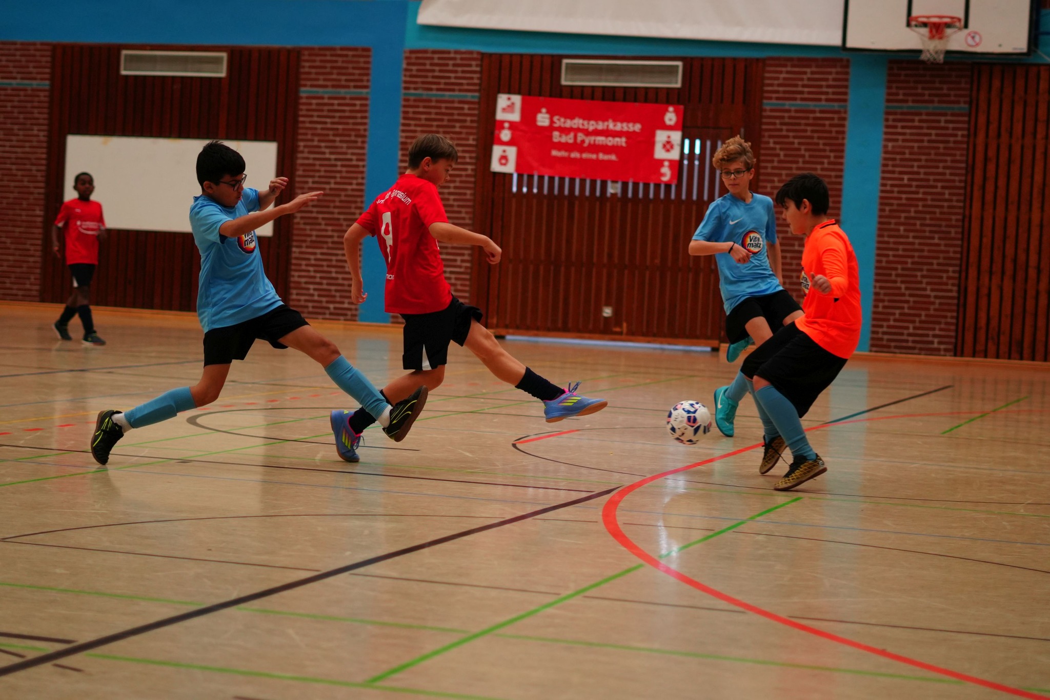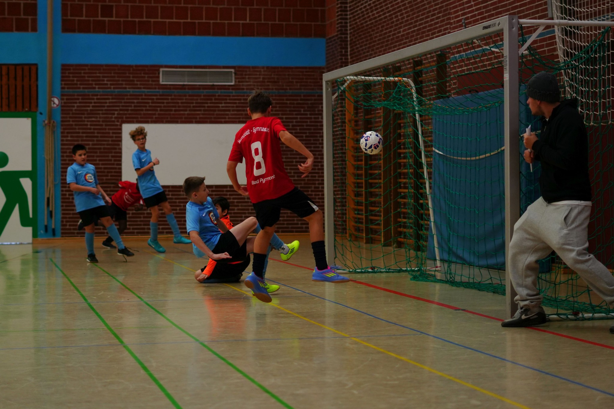 Am Donnerstag vergangener Woche kam es in der Sporthalle an der Südstraße in Bad Pyrmont zur mittlerweile 17. Auflage unseres großen U13-Turniers um den "S-Indoor-Cup". Wie üblich waren acht Mannschaften aus dem Kreis am Start: Neben den beiden Teams unserer Schule bestand das Teilnehmerfeld aus einem Hamelner "Kontingent" mit dem Vorjahressieger vom Albert-Einstein-Gymnasium, dem Schiller-Gymnasium, der IGS West sowie der Elisabeth-Belling-Gesamtschule. Hinzu kamen die KGS Salzhemmendorf und die schon bewährte Spielgemeinschaft aus Herderschule und Max-Born-Realschule Bad Pyrmont.