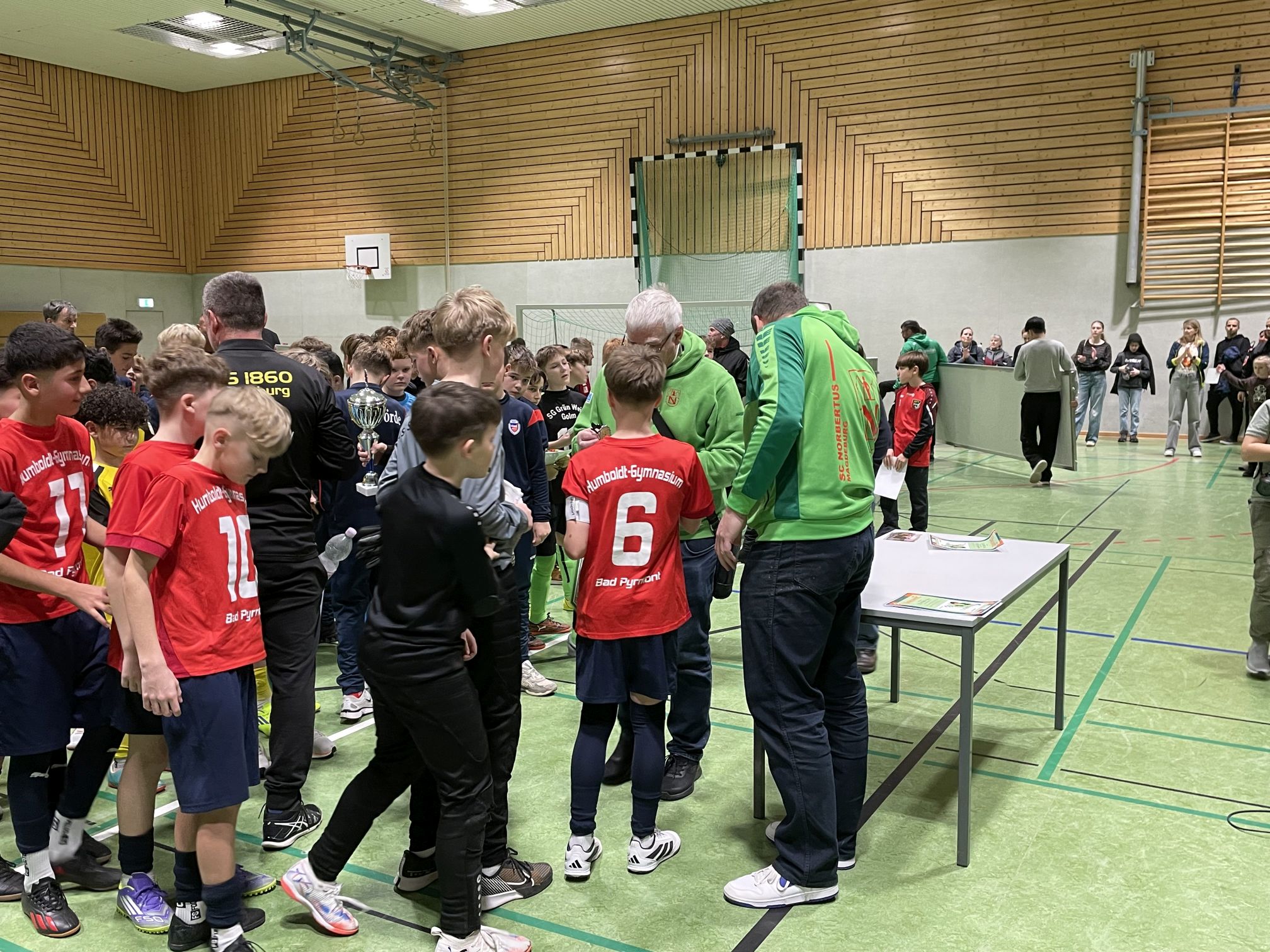 Insgesamt war die Fahrt nach Magdeburg wieder ein ganz tolles Erlebnis - veredelt durch den zweiten Erfolg in Serie - der einen fantastischen Mannschaftsleistung und der großartigen taktischen Einstellung des Teams durch die Junior Coaches Elias, Kevin und Silvan zu verdanken war! Wir gratulieren allen Beteiligten ganz herzlich - und bedanken uns bei den Vätern, die bei der Fahrt dabei waren, bei den Junior Coaches für ihren großen Einsatz, bei den neun anderen Teams für die schönen und meist fairen Spiele, beim Elternverein für die großzügige finanzielle Unterstützung sowie vor allem natürlich bei den Gastgebern vom Norbertusgymnasium für ein wieder einmal super organisiertes Turnier in einem fantastischen Rahmen!